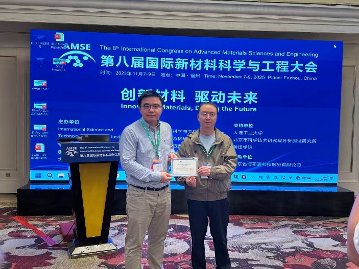 2025年11月7日-9日,我院生物医用材料技术研究中心主任于振涛教授率团队参加在福建福州召开的第八届国际新材料科学与工程大会。参会成员包括金卫红副研究员、易艳良副研究员、刘洋赈副研究员、曹晟副研究员以及王宾、何建斌等硕士研究生。本届大会由国际科技会议研究院(ISTCI)主办,福州大学新能源材料与工程学院、福州大学新能源材料与工程研究院、武汉纺织大学纺织新材料与先进加工全国重点实验室、暨南大学、江西理工大学材料科学与工程学院协办,大连四叶草会展有限公司承办。会议以“创新材料,驱动未来”为主题,在福州中庚喜来登酒店汇聚了全球十多个国家的300余位学界与业界精英,聚焦材料科技前沿,共谋未来发展机遇。