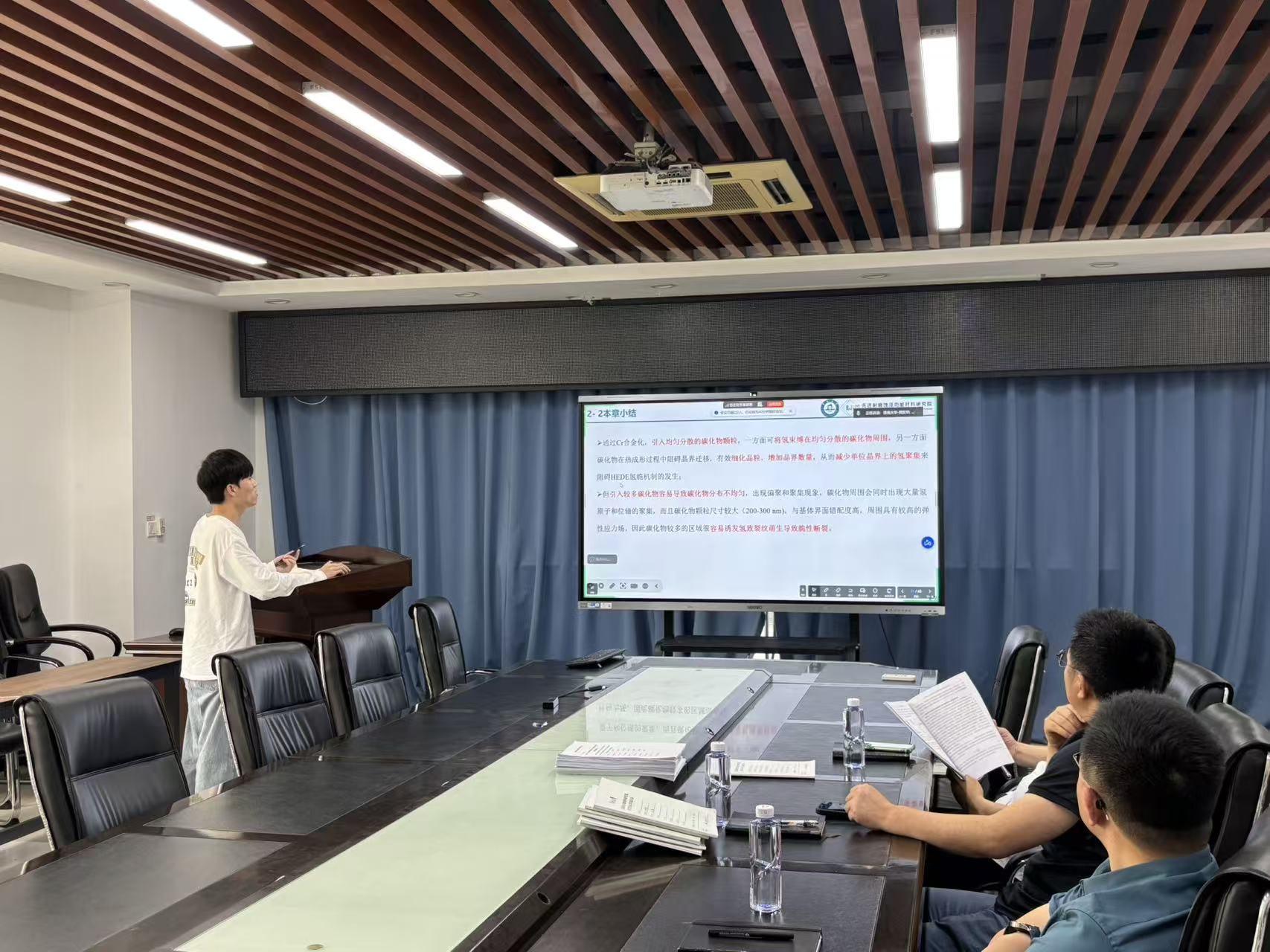 3月30日下午,我院3D打印材料技术及增材制造研究中心在第二理工楼347会议室举行2023级硕士研究生毕业预答辩。考核小组由王小健研究员、周圣丰教授、尤德强高级工程师和曹晟副教授共4位专家组成,我院教师和其他年级同学参与旁听本次考核答辩。2023级硕士研究生陈裕鑫、徐非、林诗韵、胡海、黄敏思、郭树升、周昊华、张寒乐、尹彬共9名同学就论文研究背景、研究方案、研究内容、创新点及发表成果等做出了详尽介绍与阐述,随后专家组成员做出点评,并提出改进意见。最后,专家组根据汇报人员的综合表现形成考核结论,9名同学均顺利通过预答辩。